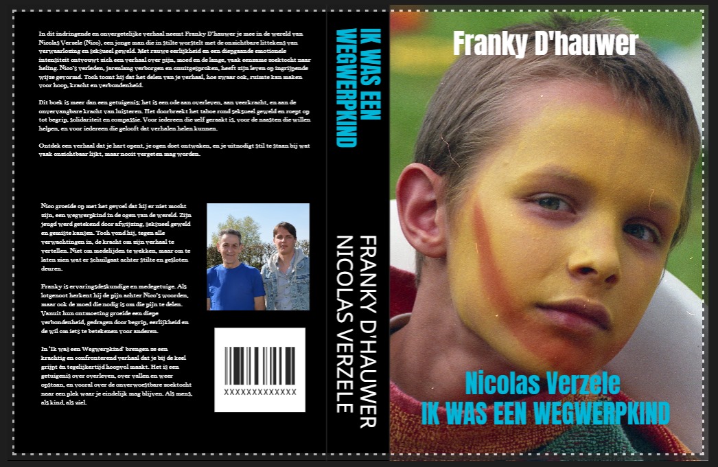 Wat als je jeugd wordt getekend door onzichtbare littekens?' Ik was een wegwerpkind' vertelt het waargebeurde verhaal van Nico en Franky, twee mannen die – ondanks diepe pijn – hun kracht hervonden. Dit boek neemt je mee in hun zoektocht naar erkenning, herstel en verbondenheid. Voor iedereen die geraakt is door seksueel geweld, maar ook voor familie, vrienden en professionals die willen begrijpen en steunen. Geen standaard zelfhulpboek, maar een eerlijk en hoopvol portret van overleven én opnieuw leren leven. Laat je raken. Laat je inspireren. Dit boek geeft een stem aan wie te lang heeft gezwegen.